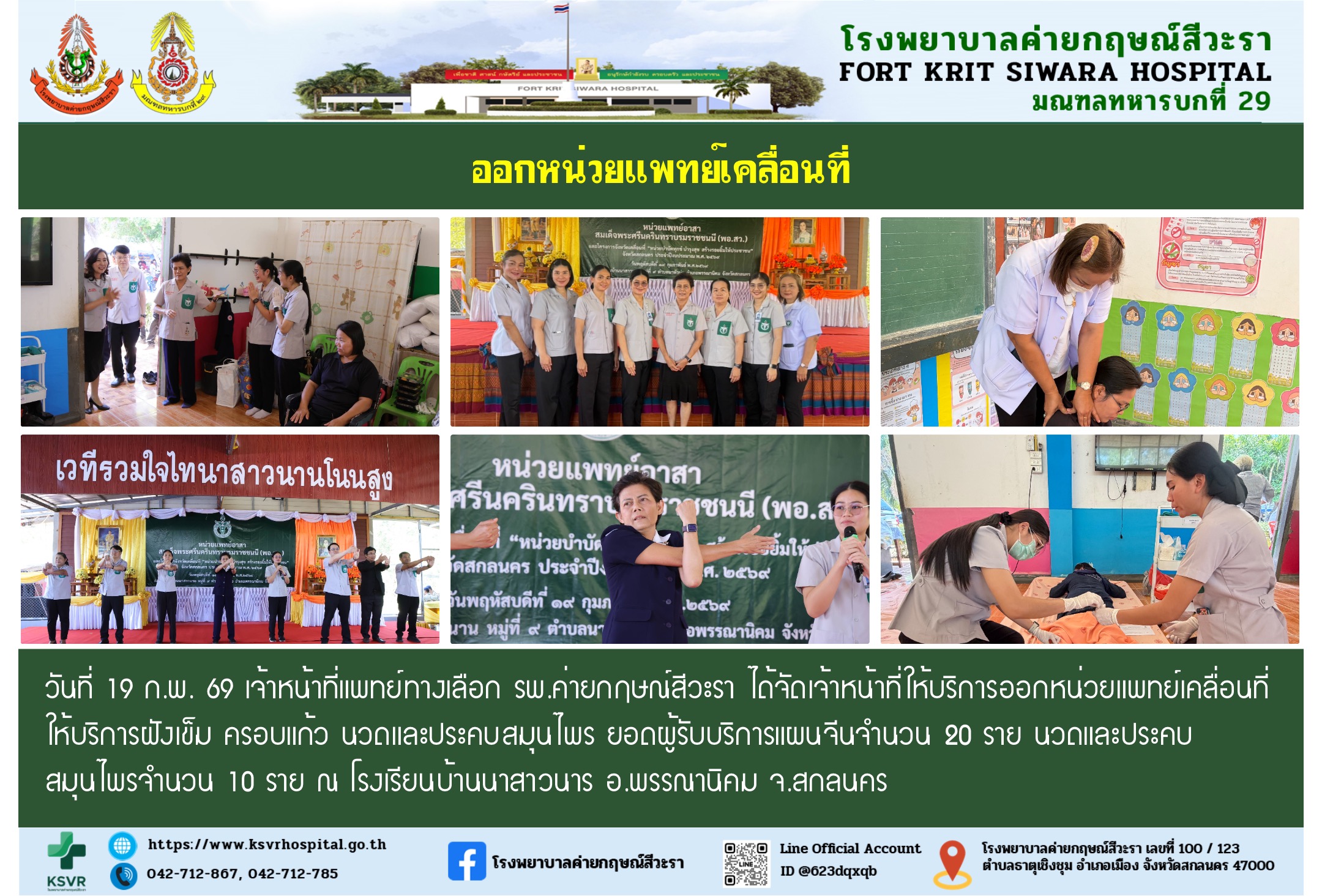 | 19 ก.พ. 2569 | ออกหน่วยแพทย์เคลื่อนที่ |