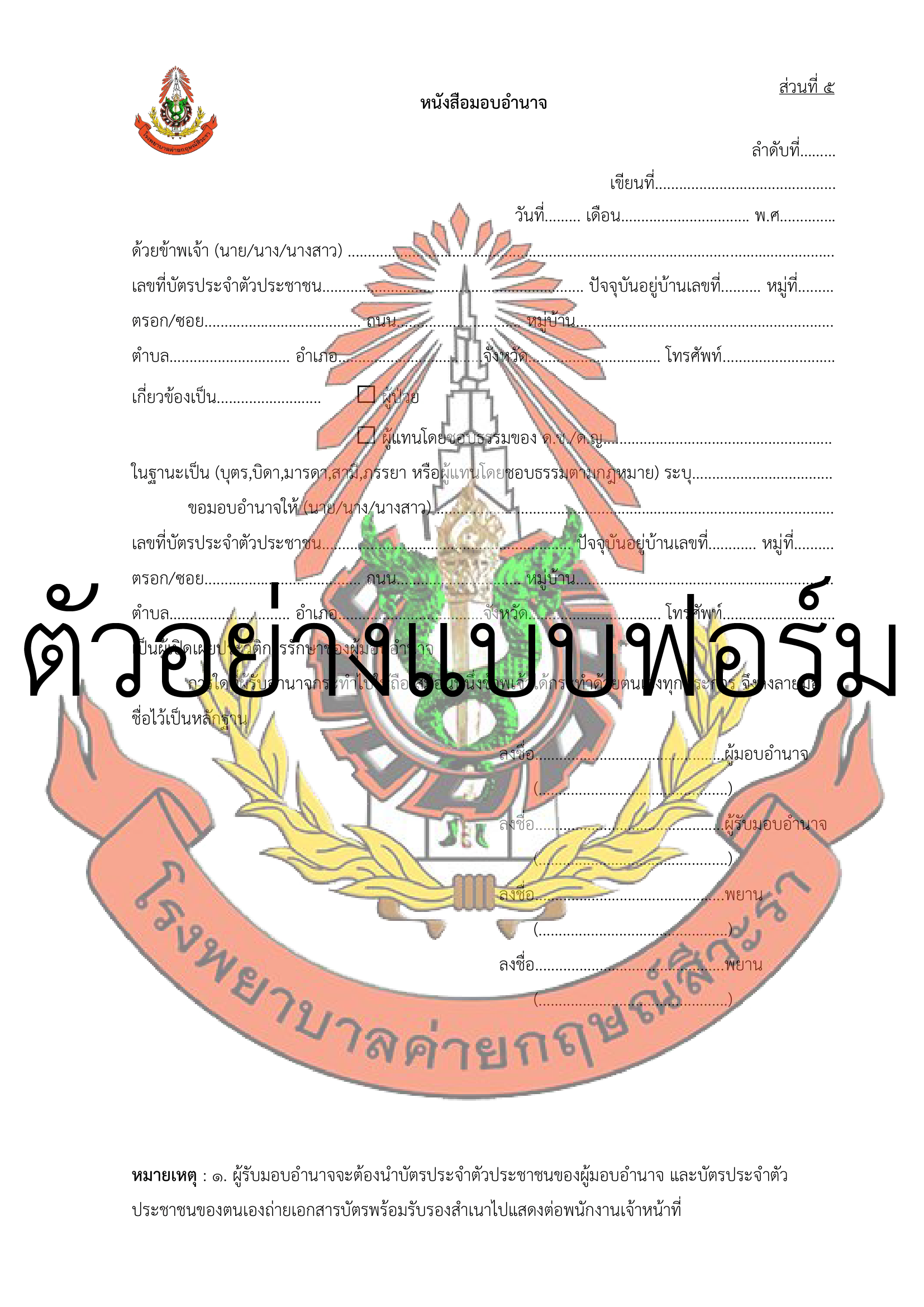 รูปแบบฟอร์มหนังสือมอบอำนาจ